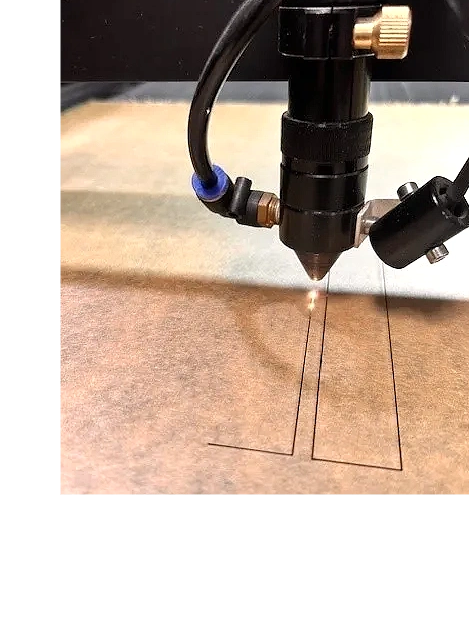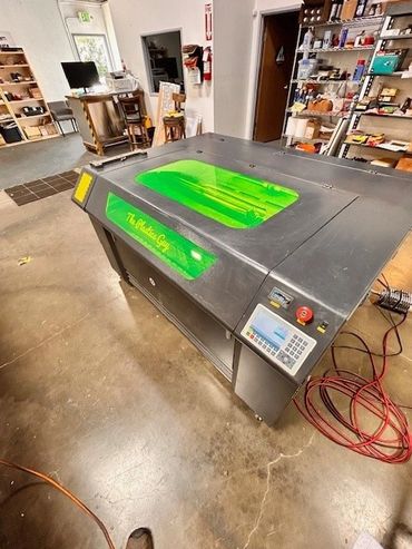 Our CO2 laser cutter is set up to cut acrylic, mdf, plywood, solid wood up to 3/8" thick, EVA foam, leather and card stock. We have also cut cardboard and etch aluminum.